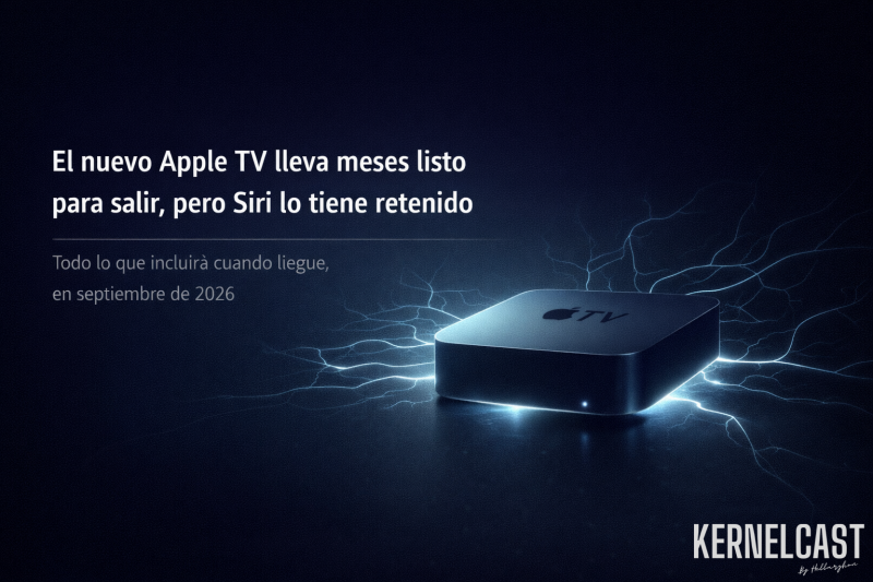 Apple tiene un nuevo Apple TV preparado, y sin embargo no lo verás en las tiendas hasta dentro de meses. El motivo tiene nombre propio: Siri. Si llevas tiempo pensando en renovar tu Apple TV, lo que viene a continuación te ayudará a decidir si merece la pena seguir esperando. La situación es un poco irónica: según los rumores más sólidos, el nuevo Apple TV está técnicamente listo para lanzarse en cualquier momento. El problema no es el dispositivo en sí, sino que Apple quiere presentarlo junto a una versión mejorada de Siri, y esa versión todavía no está lista. Mark Gurman, el periodista de Bloomberg que mejor conoce los planes internos de Apple, ha señalado que el Apple TV está atado a nuevas funciones de inteligencia artificial que la compañía ha pospuesto hasta septiembre de 2026. Apple tenía previsto presentar estas capacidades en primavera, pero los problemas con Siri han empujado todo hasta iOS 27. Y mientras Siri no esté lista, el Apple TV tampoco saldrá. No es el único dispositivo afectado. El rumoreado centro de control para el hogar y una nueva versión del HomePod también están esperando en la misma cola. Apple ha apostado fuerte por vincular su hardware con su IA, y ahora ese mismo vínculo le está frenando.