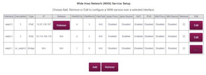 Seleccionamos la VLAN 6 (ppp0.1) a la derecha activando la cssilla Remove y clicamos abajo en el botón rojo de Remove.