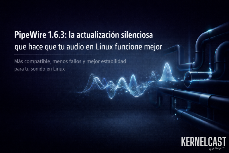 Antes de entrar en materia, un poco de contexto. PipeWire es el sistema que gestiona los flujos de audio y vídeo en las distribuciones modernas de Linux. Es, en cierta forma, el fontanero invisible de tu escritorio: tú pones música, ves una videollamada o grabas un podcast, y PipeWire se encarga de que todo llegue al sitio correcto sin que tengas que pensar en ello. La serie 1.6 es la rama estable actual, y esta versión 1.6.3 llega tres semanas después de la 1.6.2 para resolver una serie de problemas concretos que afectaban a distintos escenarios de uso.